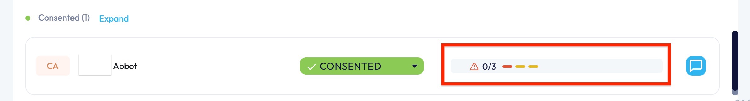 NOTE: If no payment has been made and the 1st payment isn't due, the bar will be grey with 0/1 and with a red warning sign next to it.