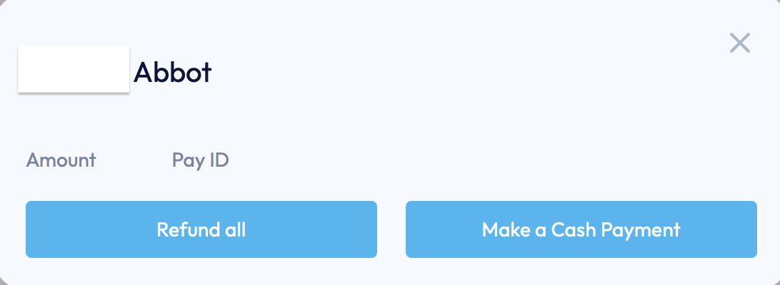 As you can see there are two options, either to refund or to mark a payment as received in cash.