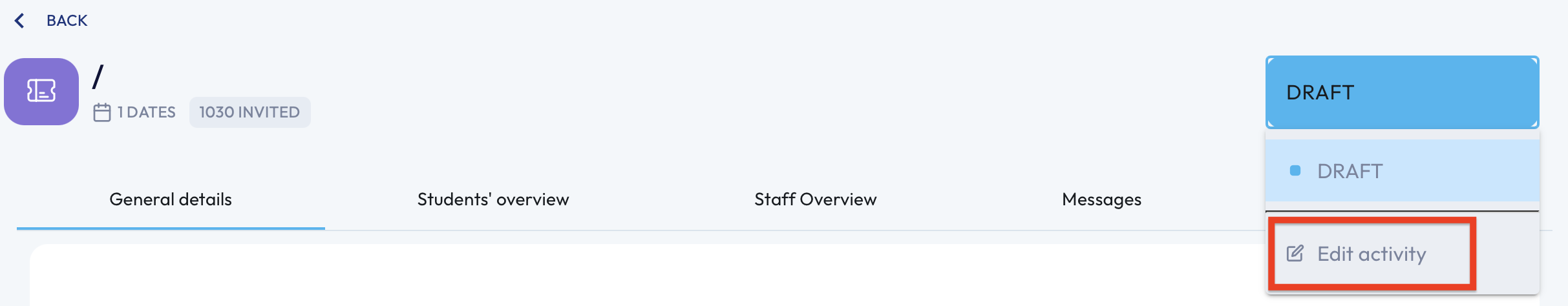 If you need to make any changes, click on the 'Draft' button on the top right-hand side and select 'Edit Activity'.