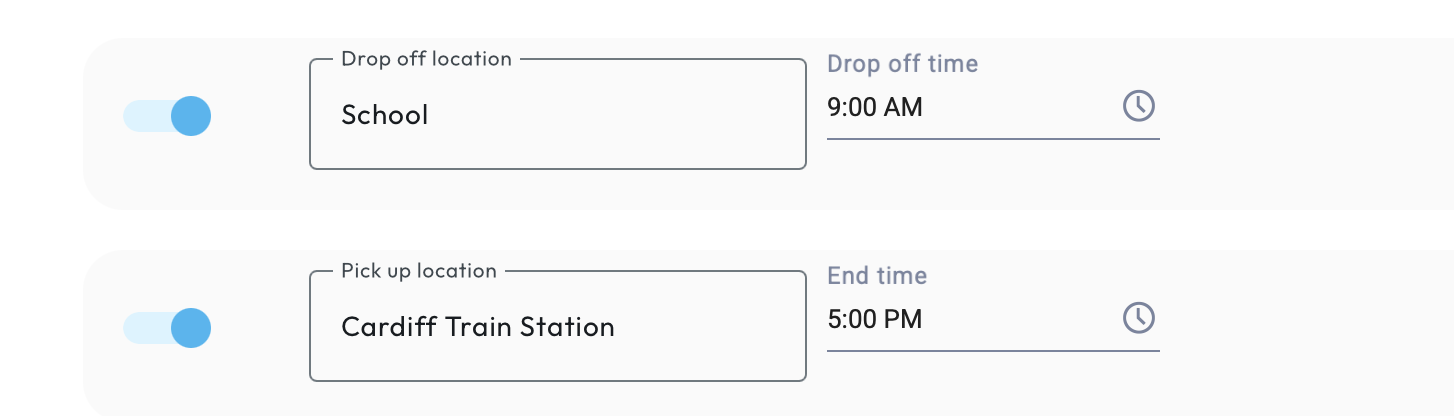 There is an option to include locations for drop off/collection. To use this function as part of the activity, you'll need to make sure they're selected as below (the slider to turn this on will turn blue once enabled).