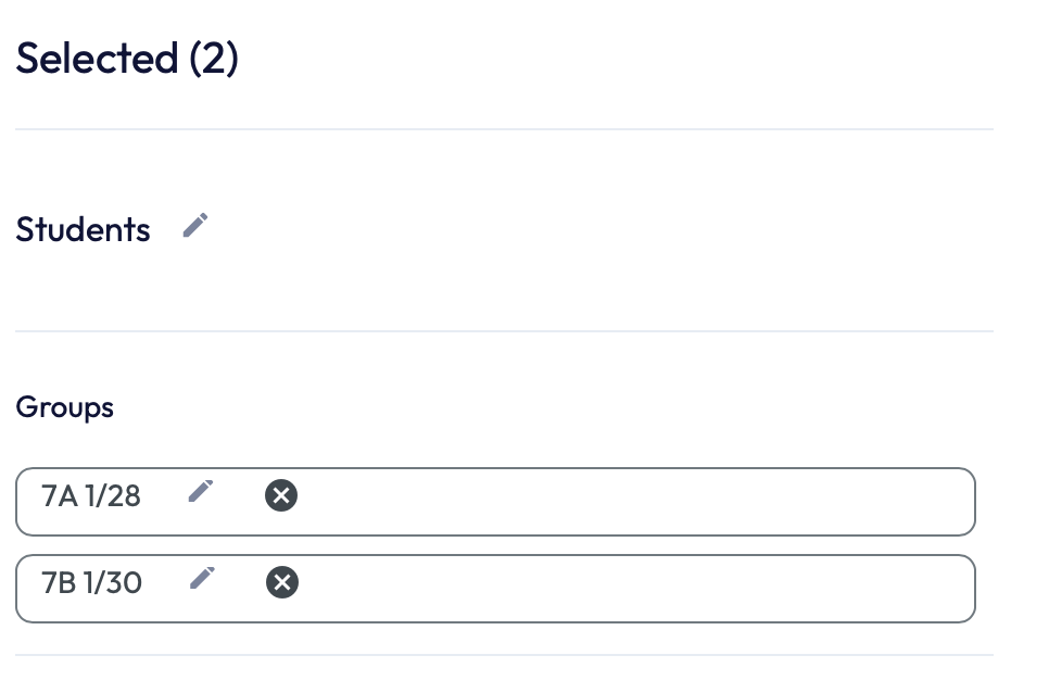 12. When all students have been selected, adjustments can be made by selecting the 'X' next to each student/class.