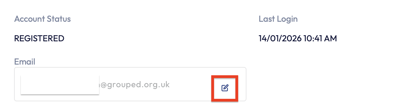 4. If you scroll down the page you'll be able to see their 'Email' section. You can edit this by clicking on the 'Paper and Pencil' icon.