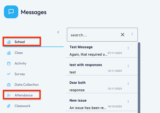 You'll then be able to locate the message through either the 'School' or 'Attendance' heading.