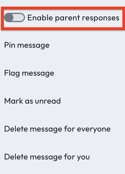 NOTE: With this feature, parents will be able to reply to any message sent by the school. They will not be able to see any other parent replies.