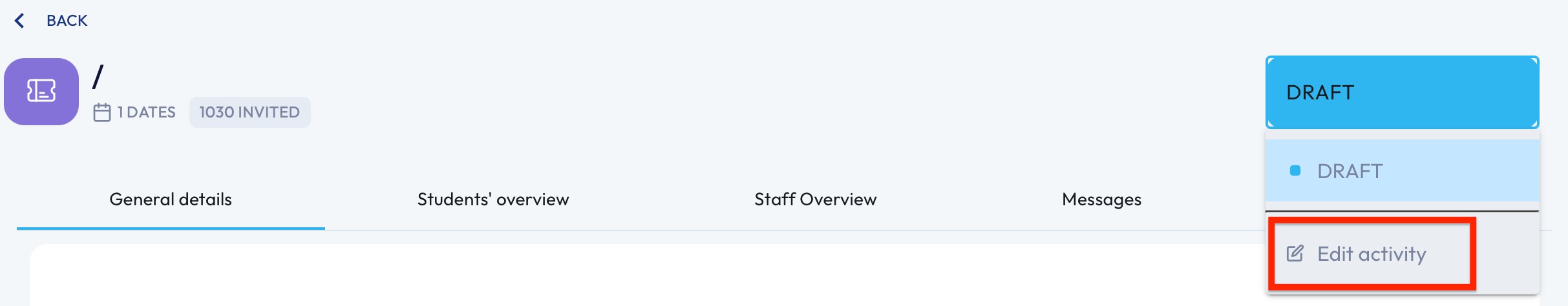 If you need to make any changes, click on the 'Draft' button on the top right-hand side and select 'Edit Activity'.