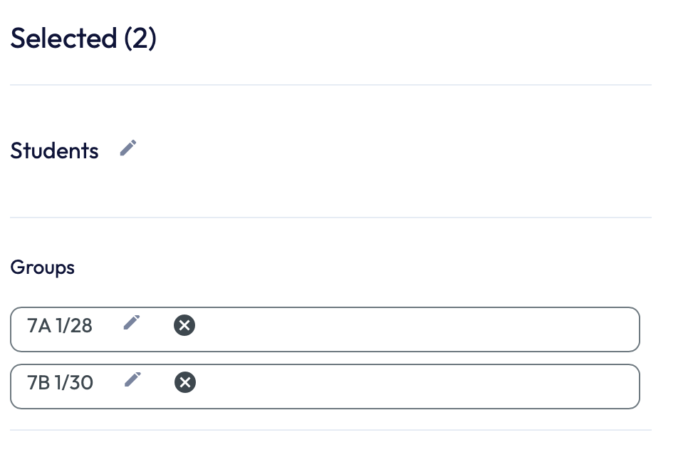 10. When all students have been selected, adjustments can be made by selecting the 'X' next to each student/class.